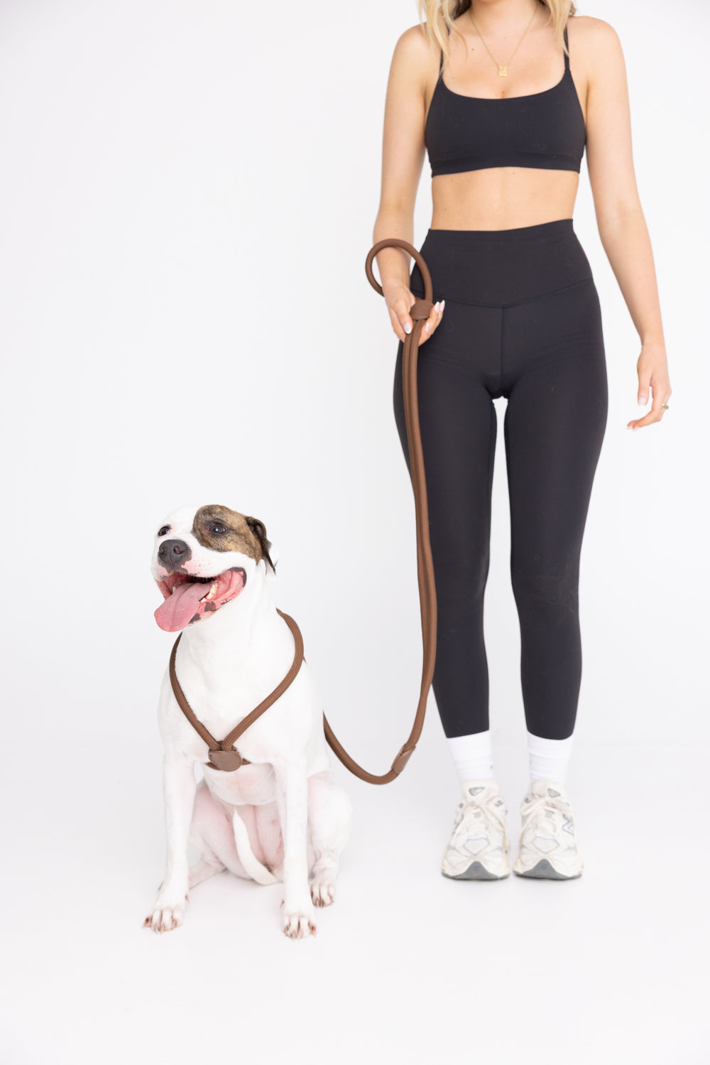 Slide the leather rings along the rope to customize the length or switch between modes. It takes just seconds to transform from a leash to a harness or hands-free setup.