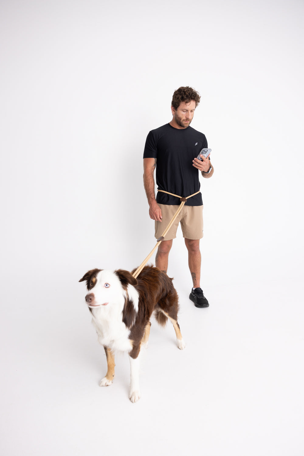 This setup keeps your dog close and secure while your hands stay free for coffee, phone, or jogging.